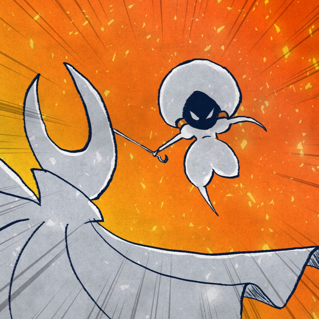 I used references almost every day. Believe it or not, even with characters as simple as those in the world of Hollow Knight, I didn’t know how to draw them before. By the end of Inktober, I could draw Hornet without looking at a picture of her.